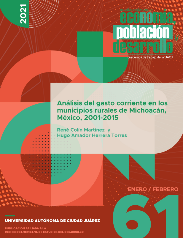 Colín, René y Hugo Herrera (2021), “Análisis del gasto corriente en los municipios rurales de Michoacán, México, 2001-2015”, en Estudios Regionales en Economía, Población y Desarrollo. Cuadernos de Trabajo de la UACJ, No. 61, Ciudad Juárez: Universidad Autónoma de Ciudad Juárez, Pp. 3-21.